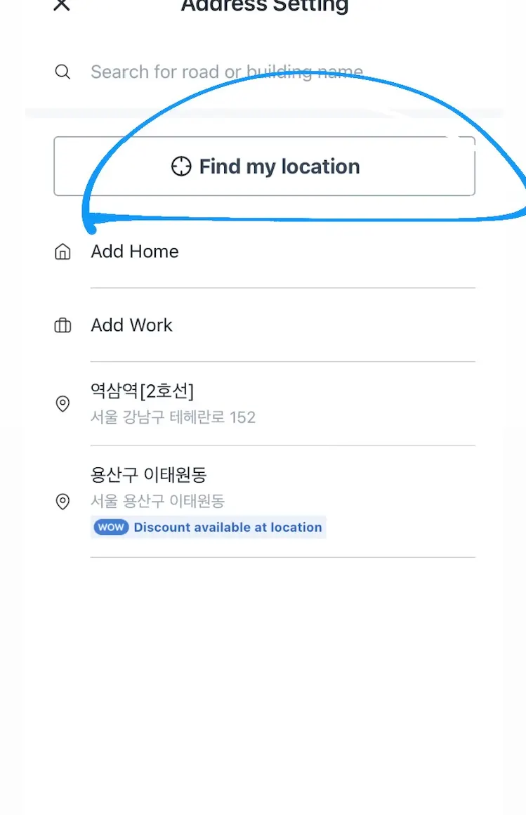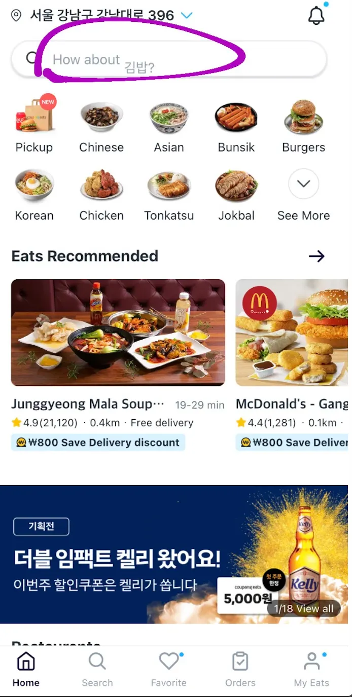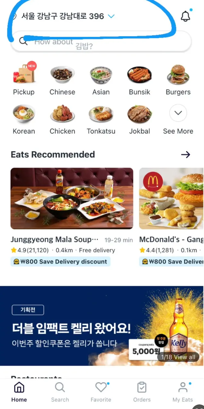 Buka aplikasi Coupang Eats dan klik bagian paling atas