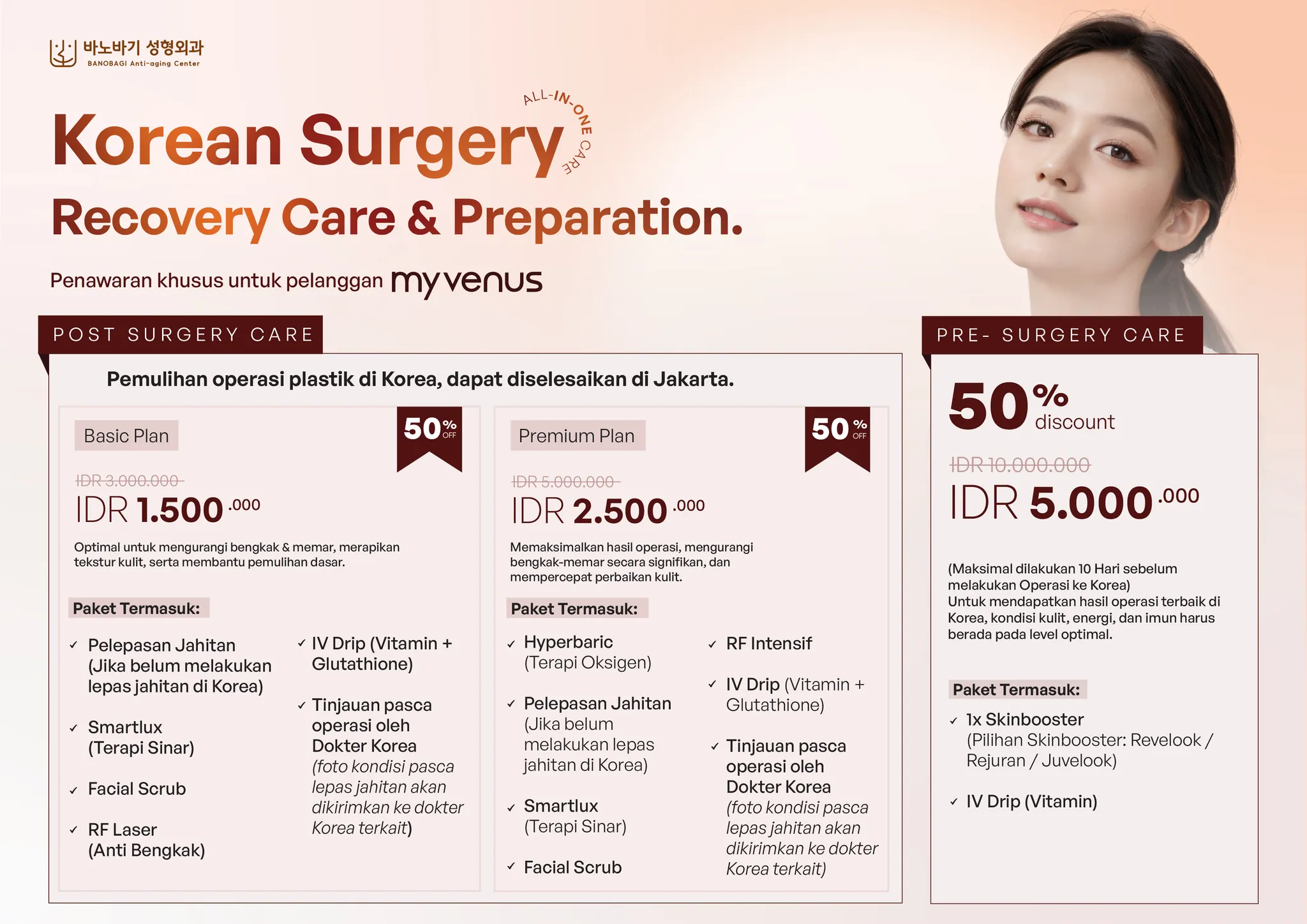 Paket ini disusun berdasarkan protokol pemulihan Banobagi Korea, dengan tujuan mempercepat masa pemulihan dan menstabilkan hasil operasi secara optimal.
