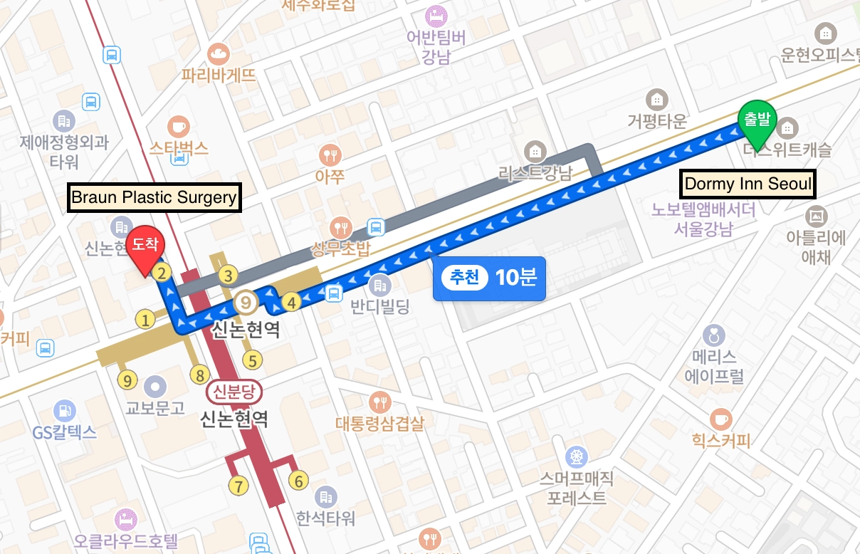 Line 9, Shinnonhyeon Station (6 menit jalan)