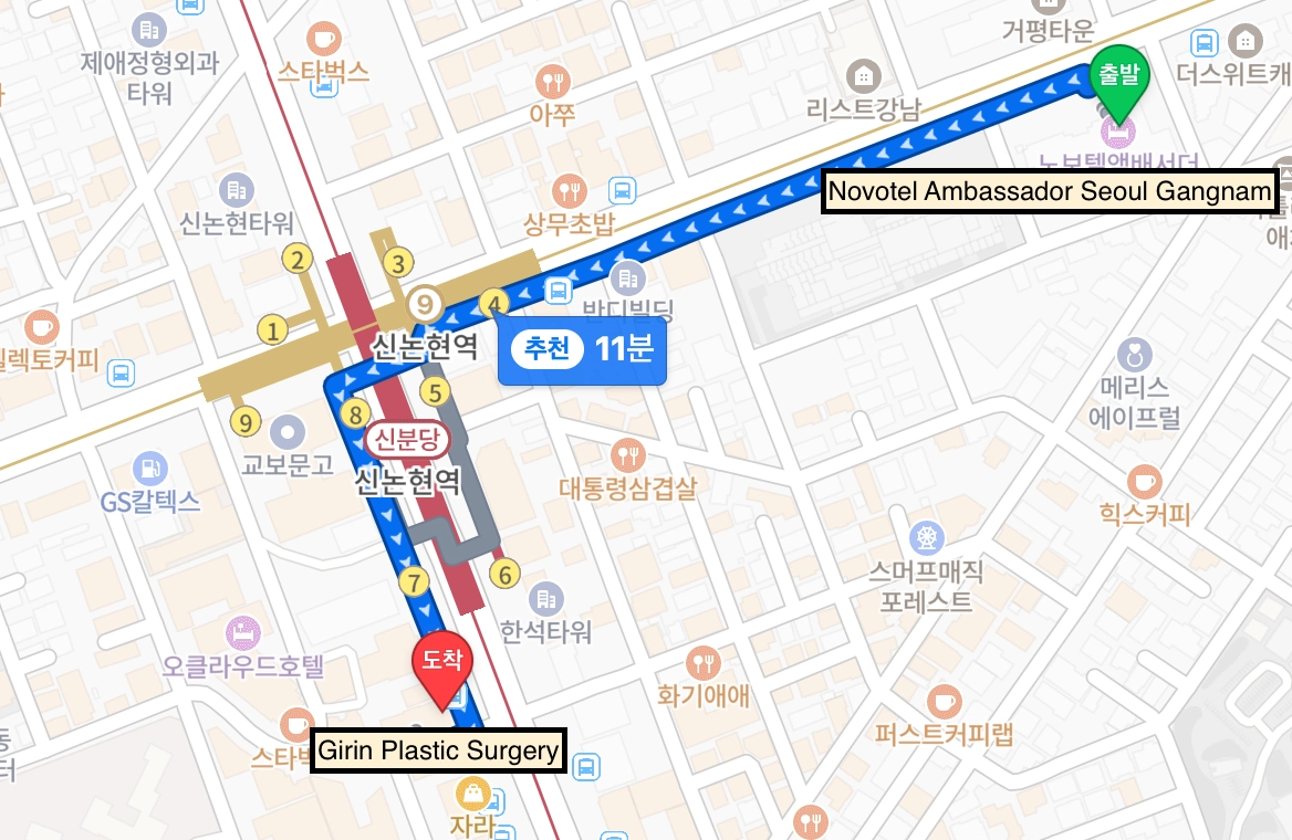 Line 9, Shinnonhyeon Station (7 menit jalan)