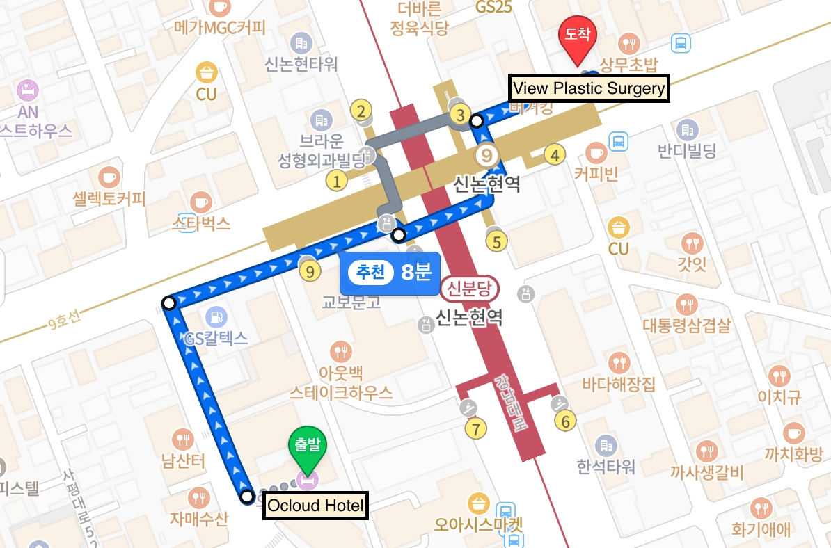 Line 9, Shinnonhyeon Station (3 menit jalan)