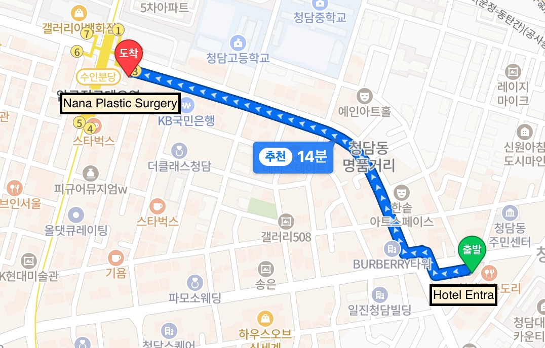 Line 7, Cheongdam Station (10 menit jalan)