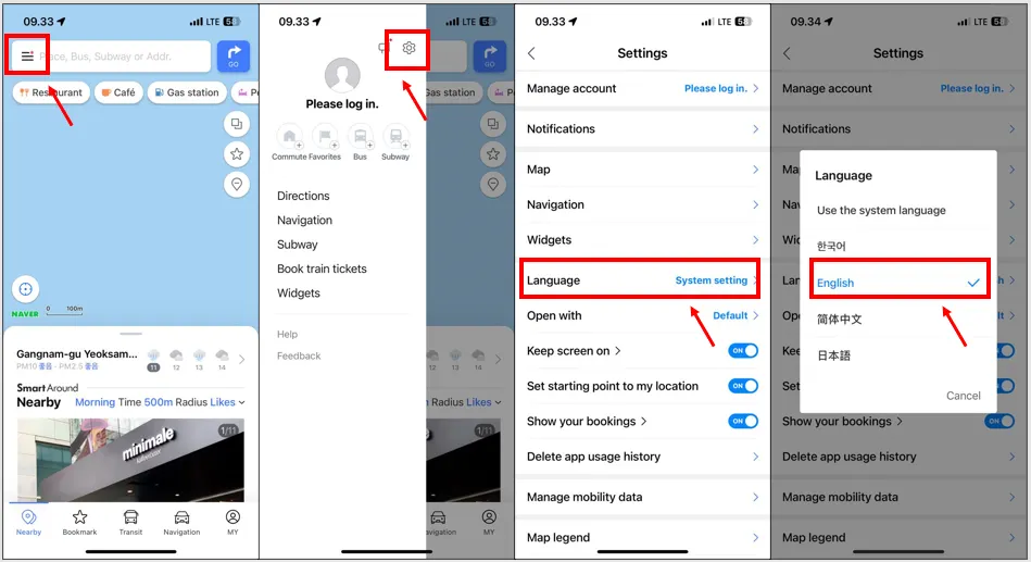 Jangan lupa untuk mengubah settingan bahasa dalam aplikasi Naver Map menjadi english.