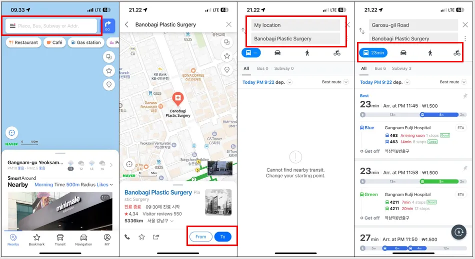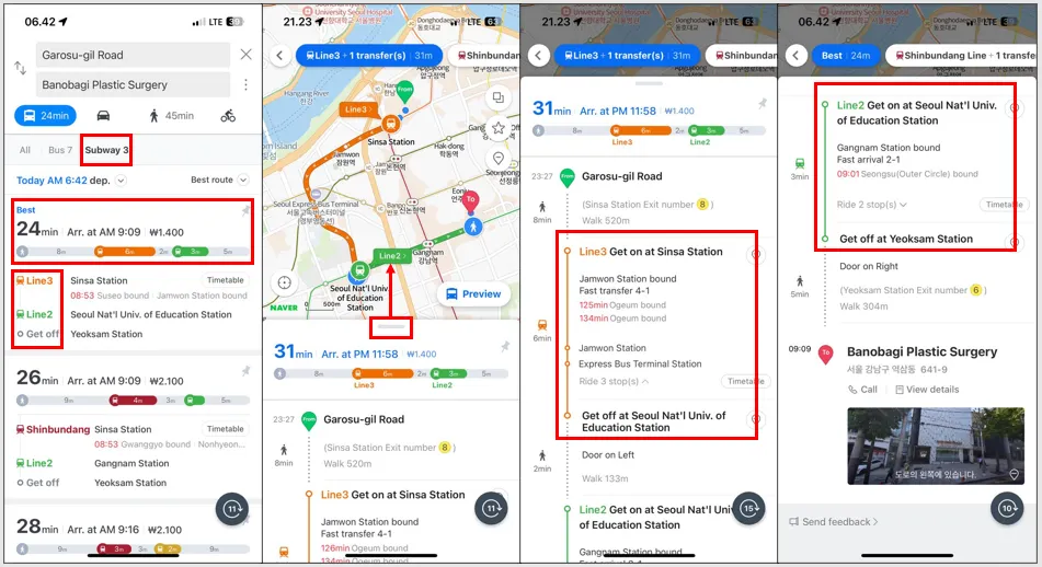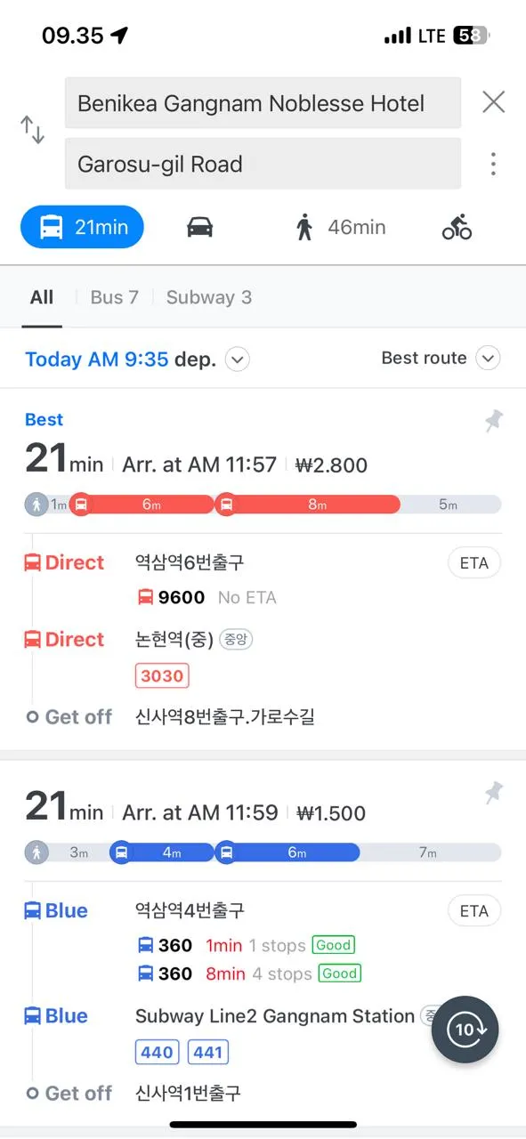 Terintegrasi juga dengan layanan bus dan subway membuat Naver Map ini lebih disarankan dibandingkan dengan Google Map. Jika kalianĀ coba searchĀ lokasi, pasti akan ditunjukkan alternatif cara untuk menuju lokasi tersebut menggunakan bus, menggunakan subway atau gabungan antara bus dan subway. Selain itu, Naver Map ini juga ngasih tau termasuk waktu tempuh jalan kaki dari rute yangĀ less walkingĀ hingga yang normal.
